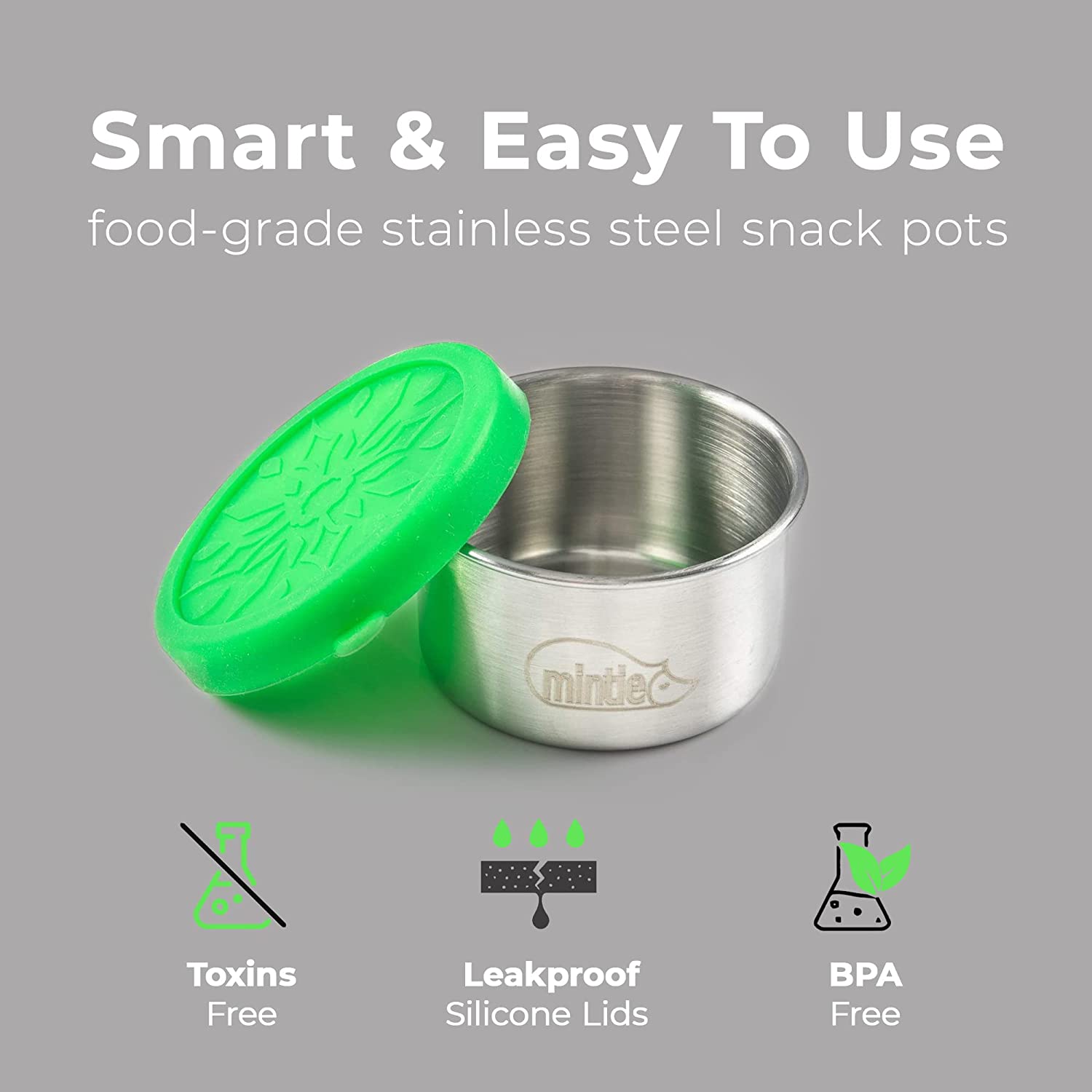 These are perfect for all your snacks on the go, as weaning dishes or as toddler pots. Mintie Mini's are leakproof making them ideal for hummus, applesauce or yogurt.
