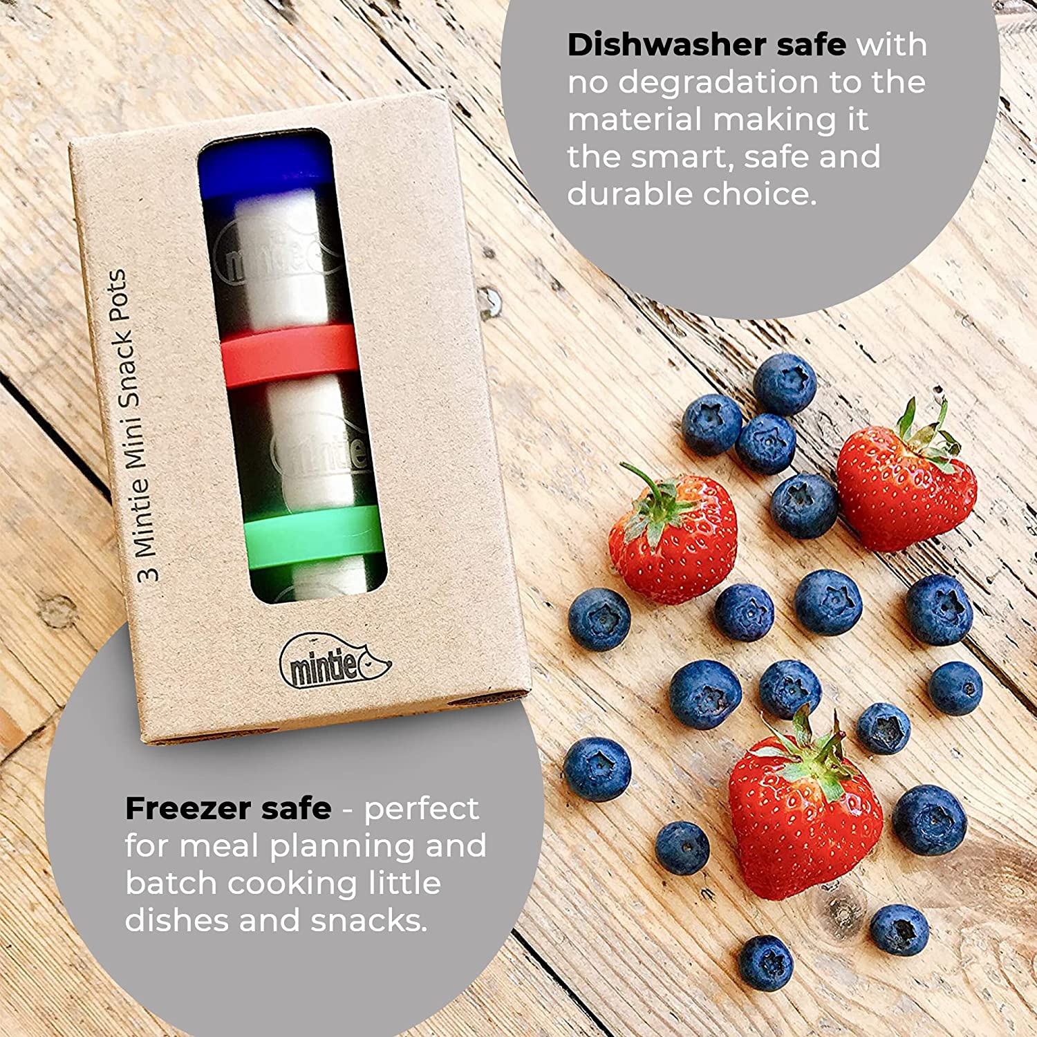 Mintie Mini's can be placed in the freezer and washed in the dishwasher with no degradation to the material making it the smart, safe and durable choice.