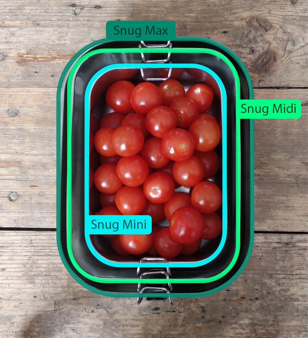 Mintie Snug Max is the biggest box in the leak proof family which makes it ideal for larger meals and heartier appetites. Great for sharing on picnics or when you want to include your snacks in the same box as your main.